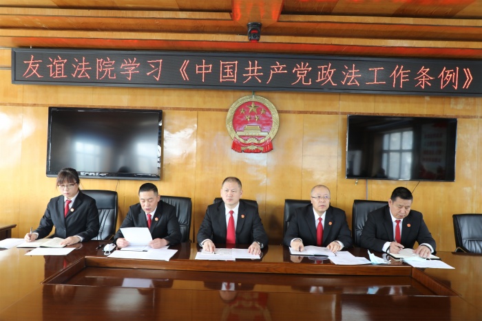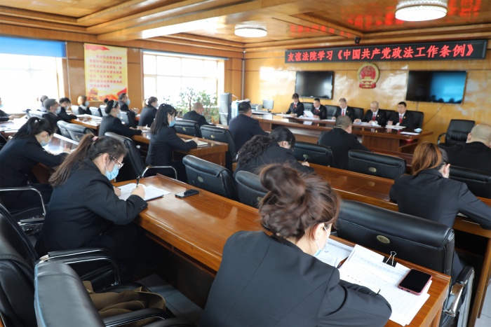 为进一步规范法院队伍建设,更好地履行新时代赋予的职责和使命,4月18日,友谊县人民法院组织全体行政编干警次集中学习《中国共产党政法工作条例》确保《条例》精神在我院得到全面贯彻落实。