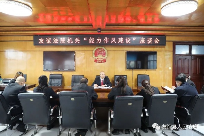为深入开展“能力作风建设年”活动,4月22日上午,友谊法院党组成员、副院长陈振华召开分管战线“能力作风建设”座谈会。会议由副院长陈振华主持,审管办、信访办、庆丰法庭、诉服中心、立案庭、政治部、党总支、综合办公室等部门负责人参加会议。