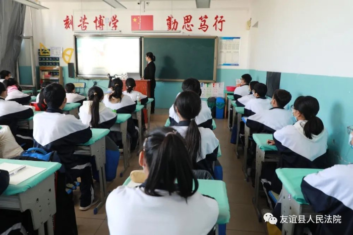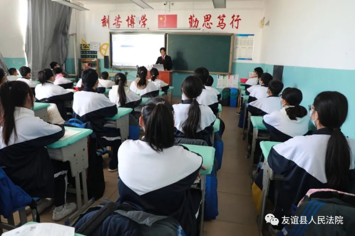 为进一步加强未成年人法治观念和自我保护意识,更好的营造未成年人的法治成长环境,在疫情形势严峻的情况下做好普法工作,10月12日,友谊法院走进县第二中学,把“公众开放日”的主战场设在了校园,为学生们带去了一场丰富的“法律盛宴”。