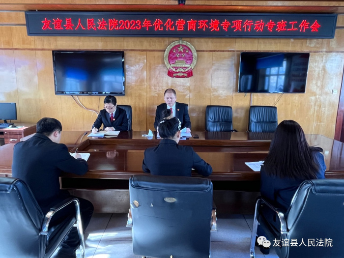 2月3日上午,友谊县法院召开2023年优化营商环境专项行动专班会议。会议由党组书记、院长李德福主持,营商环境工作专班负责人参加会议。