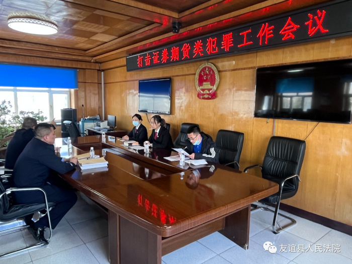 3月21日下午,友谊县人民法院联合友谊县公安局和友谊县人民检察院召开打击证券期货类犯罪工作会议。庆丰人民法庭庭长王慧铭主持会议。