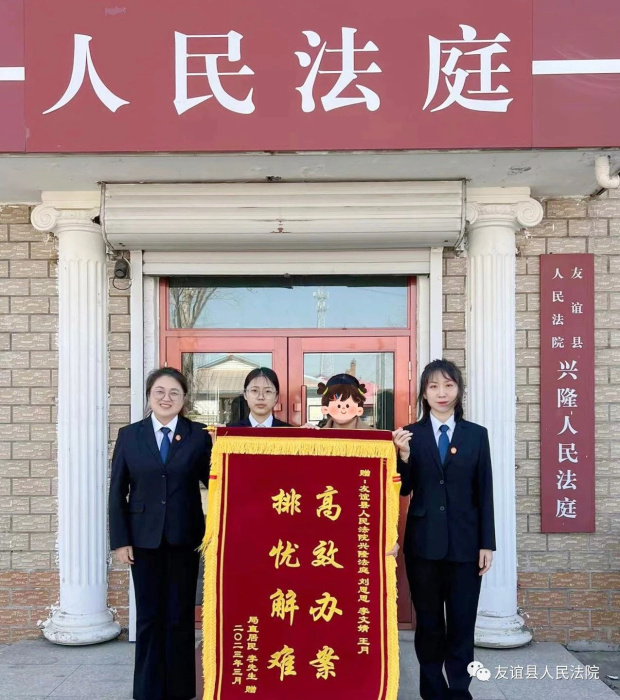 近日,友谊县人民法院兴隆人民法庭受理一起买卖合同纠纷案,该案已调解并履行完毕。当事人送来锦旗,对兴隆人民法庭耐心调解、督促履行表示感谢。