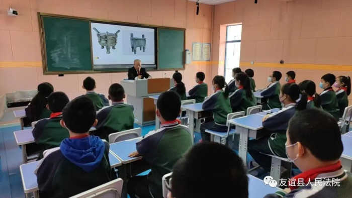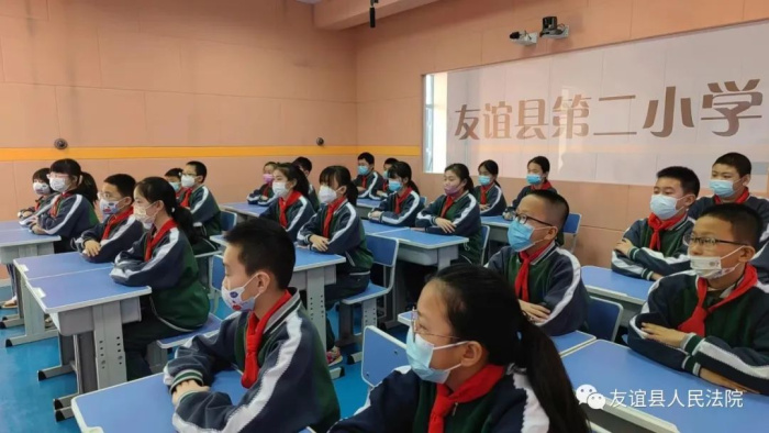 为进一步推进青少年法治教育,弘扬法治观念,全面贯彻落实送法进校园相关活动部署。3月29日,友谊县人民法院采取“公众开放日”走出去的形式送法进校园,综合审判庭庭长孙绪水作为友谊县第二小学的法治副校长走进学校,为全校600余名师生进行了一堂生动的法治教育公开课。部分师生在现场听课,其他师生在各自班级通过多媒体连线方式同步参与听课。