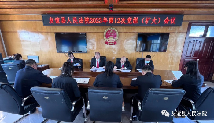5月12日上午,友谊县人民法院召开2023年度第12次党组(扩大)会议。传达学习贯彻全市法院深化能力作风建设“工作落年”暨“三航行动”再出发活动和优化营商环境推进会会议精神。党组书记、院长李德福主持会议并讲话,党组成员参加会议,各部门负责人及营商环境专班成员列席会议。