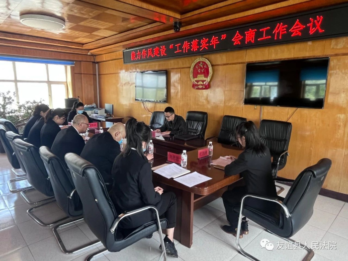 5月29日上午,友谊县纪委监委派驻财政局纪检监察组与友谊法院召开能力作风建设“工作落实年”会商工作会议,友谊法院党组成员、副院长陈振华主持会议,友谊县纪委监委派驻财政局纪检监察组组长边策参与会商,党组成员、各部门负责人参加会议。