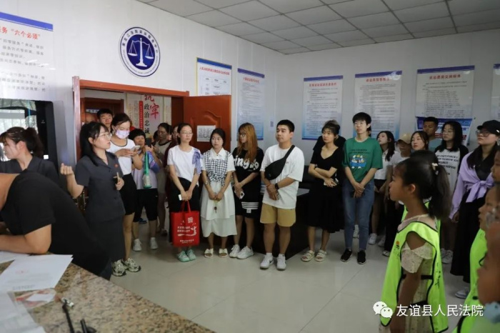 为进一步增强青少年的法律意识,提高青少年的法律素养,7月20日上午,友谊县人民法院开展了“第六十七次公众开放日”活动,邀请友谊县第一小学学生和友谊县大学生“返家乡”社会实践志愿服务队共40余名老师和学生走进县法院,零距离接触法院文化,感受法治文化的教育和熏陶,开启一场难忘的暑期法治之旅。