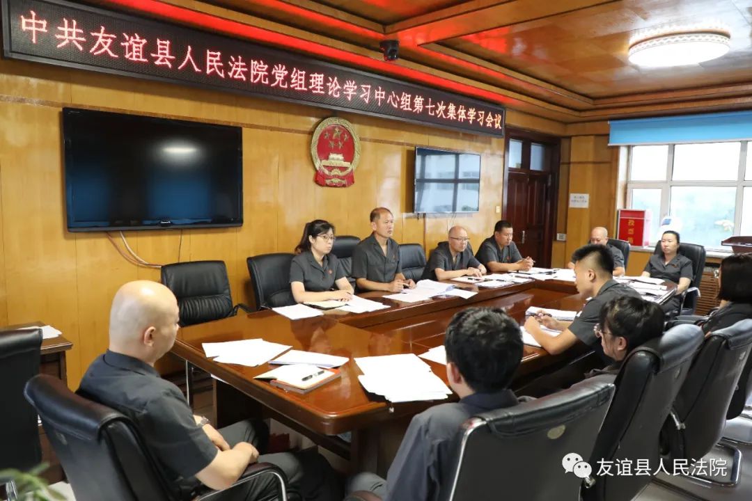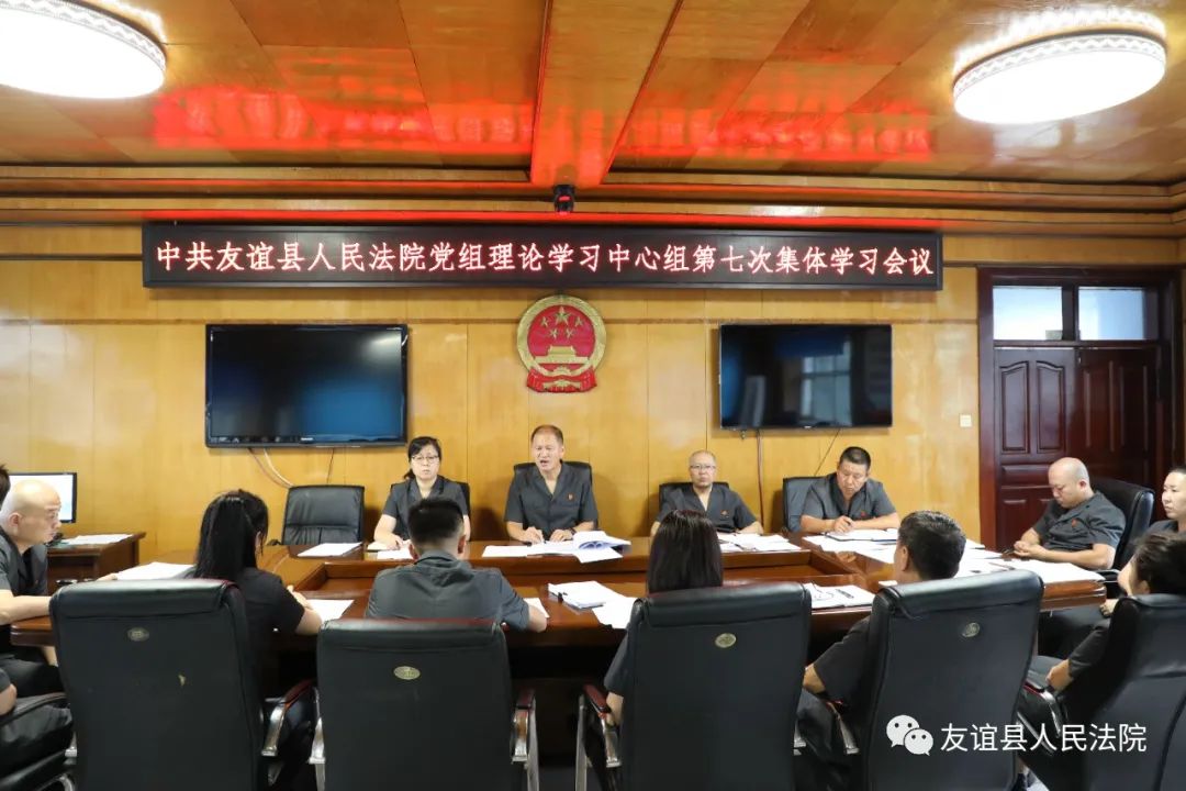 8月10日下午,友谊县人民法院党组理论学习中心组召开第七次集体学习会议,会议传达学习最高人民法院张军院长在全国大法官研讨班上的重要讲话精神和省法院党广锁院长在全省高级法官研讨班上的讲话精神。党组书记、院长李德福主持会议并讲话,理论中心组成员参加学习,全体法官及各部门负责人列席会议。