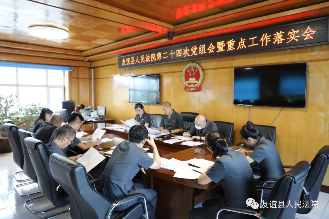 8月17日,友谊县人民法院召开重点工作推进会,深入学习贯彻落实全国大法官研讨班、全省高级法官研讨班精神,学习贯彻全市法院重点工作推进会会议精神,安排部署下半年工作,奋力推进友谊法院工作现代化。党组书记、院长李德福主持会议并讲话,党组成员参加会议,部门负责人、全体法官列席会议。