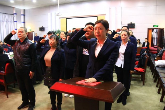 会上,伴随着国歌声,在领誓员的带领下,45名人民陪审员面向国旗,高举右拳,庄严宣誓:“我是中华人民共和国人民陪审员,我宣誓:忠于中华人民共和国宪法,拥护宪法权威,履行法定职责,忠于祖国,忠于人民,恪尽职守,廉洁奉公,接受人民监督,为建设富强民主文明和谐美丽的社会主义现代化强国努力奋斗!” 嘹亮的誓言表达了他们对宪法和法律的忠诚信仰及忠实履行陪审职责的心声。