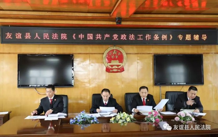 近日,友谊法院召开全体党员大会,组织学习《中国共产党政法工作条例》。