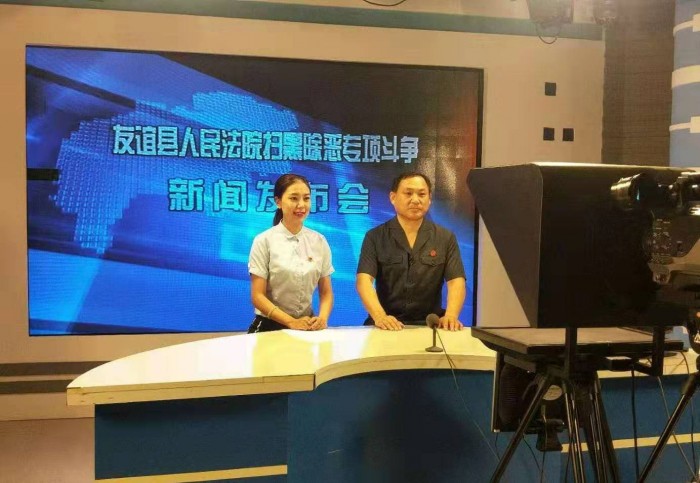 2019年7月17日上午,友谊县人民法院召开扫黑除恶专项斗争工作新闻发布会,向社会各界通报友谊法院“扫黑除恶”工作进展情况。发布会在友谊广播电视台举行,法院党组成员、副院长孙国峰做新闻发布,县委宣传部郭晓玲主持。