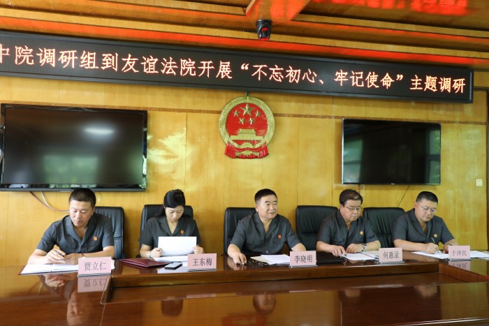 7月23日,市中院党组副书记、副院长李晓明等一行5人,深入到友谊法院开展“不忘初心、牢记使命”主题教育专题调研。