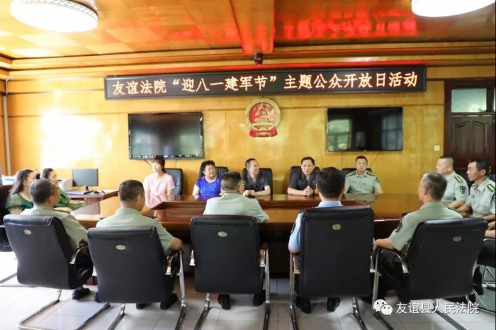 8月1日上午,在庆祝建军九十二周年之际,友谊县人民法院举办“迎八一建军节”主题公众开放日活动,邀请县武装部官兵和群众代表走进法院,零距离了解法院,营造良好双拥氛围,密切人民法院与部队的联系。
