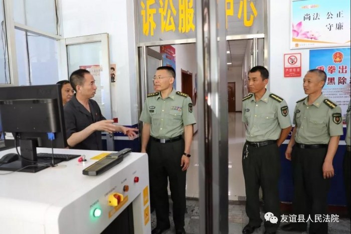 8月1日上午,在庆祝建军九十二周年之际,友谊县人民法院举办“迎八一建军节”主题公众开放日活动,邀请县武装部官兵和群众代表走进法院。