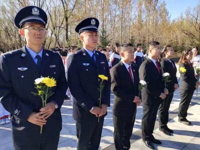 在法警队长宋海斌的带领下,入党积极分子们肃然站立,默哀三分钟,并依次向烈士墓献花,表达了对革命烈士的崇高敬意和无限哀思。