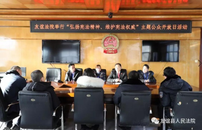 为大力弘扬宪法精神、维护宪法权威,努力营造尊崇宪法、学习宪法、遵守宪法、维护宪法、运用宪法的浓厚氛围,12月3日,在第六个“国家宪法日”来临之际,友谊法院举行“弘扬宪法精神、维护宪法权威”主题公众开放日活动,特邀请县人大代表、律师代表和司法局工作人员参加此次活动。