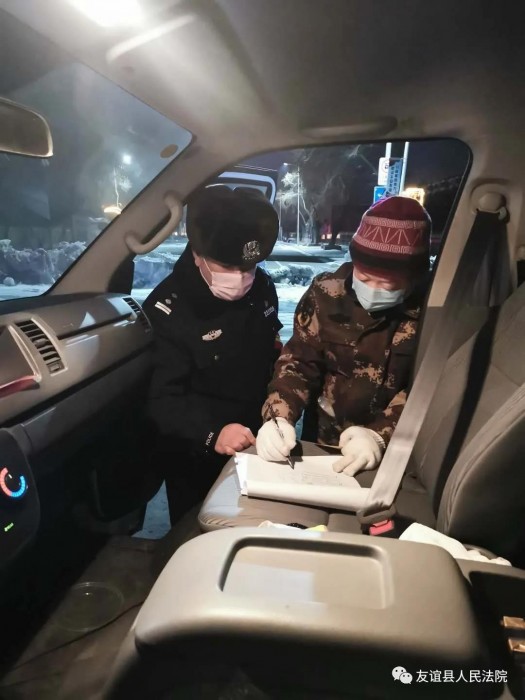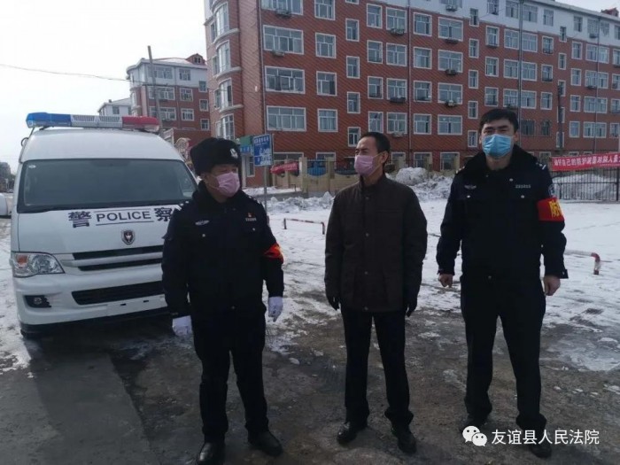 2月21日,友谊法院党组书记、院长袁春友到卡口参加防疫工作。在卡点执勤过程中,袁春友和值守干警一道,对来往人员进行登记、劝返等工作。袁院长表达了对干警的关心,“这样的天气,在路口执勤冷不冷?”“不冷,忙活忙活,一会儿就出汗了!路口有群众过来,我们就跑过去,询问他们是否有出门证,出去办理什么事情?如果不是很着急或是可以暂缓办理的事情,我们就耐心进行劝返,和他们说:‘这是一场人民战争,每一个居民都是这场战役的参与者,你们在家安心待着,不给政府填乱,就是服务社会,你们在家中不是“隔离”,是用一种特殊的方式参与这场战斗。’”这就是一名共产党员的初心与坚守!顶着凛冽的寒风,却始终没有一句怨言。午饭,他们就用泡面对付一顿……一个卡点就是一个“堡垒”,路口执勤、卡点登记,法警党支部的全体党员同心协力,共同筑牢疫情防控“红色堤坝”,让党旗在防疫斗争最前线高高飘扬!