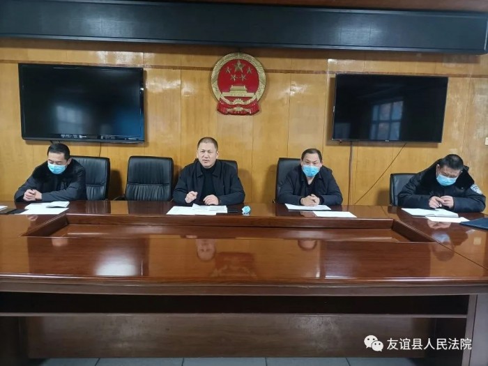 1月19日下午,友谊法院召开党组(扩大)会议,贯彻落实省、市、县防疫工作会议精神,部署我院防疫防控措施。会议由党组书记李德福主持,党组成员参加会议,各内设机构负责人列席会议。