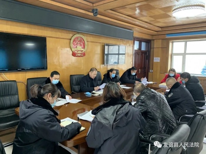 1月28日,友谊法院召开党组(扩大)会议,专题学习市委十一届七次全会精神县委三届七次全会精神,会议由党组书记、院长李德福主持,党组成员参加会议,全体法官列席会议。