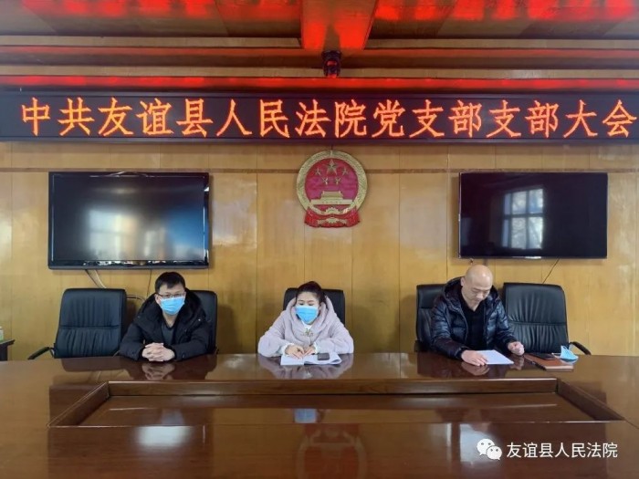 2月7日,中共友谊县人民法院支部委员会召开支部大会,对接收预备党员关勇、张首昂同志为预备党员进行讨论和表决。本次会议由支部书记陈超同志主持,中共友谊县委组织部、中共友谊县直属机关工作委员会派员到会监督指导,会上2名同志将自己对党的认识、入党动机及个人履历进行了汇报;入党介绍人宋海斌、付颖昕就2名同志递交入党申请书以来对其进行考察、培养的情况进行了综合述评,参会党员进行了无记名投票,经支部党员大会决议,同意接收2名同志为中共预备党员。